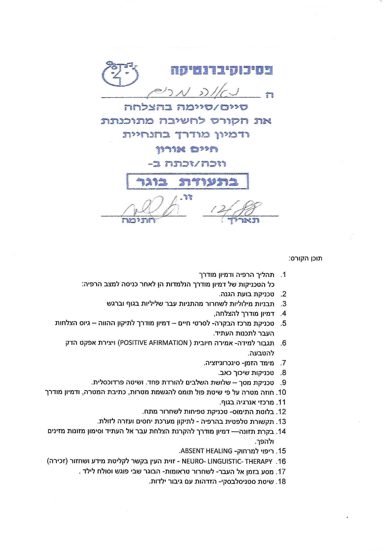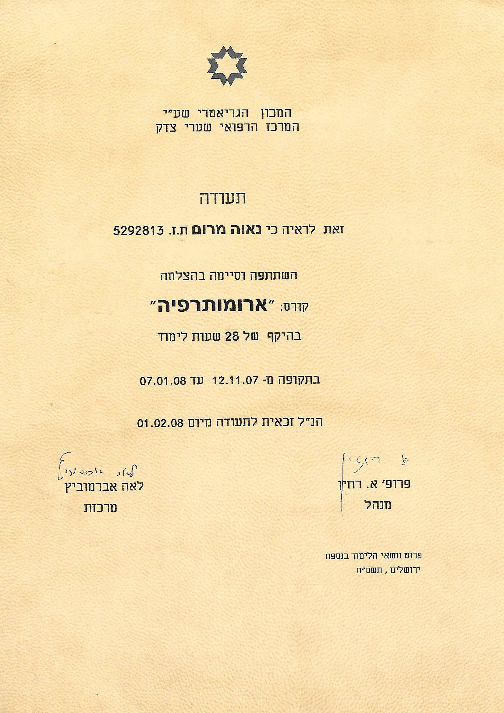 ۞ העברתי שתי קבוצות טיפוליות ייחודיות מבוססות ידע נשימתי וNLP בעבודתי כמרפאה בעיסוק בשיקום אורתופדי נוירולוגי ונשימתי בבי"ח הרצפלד: