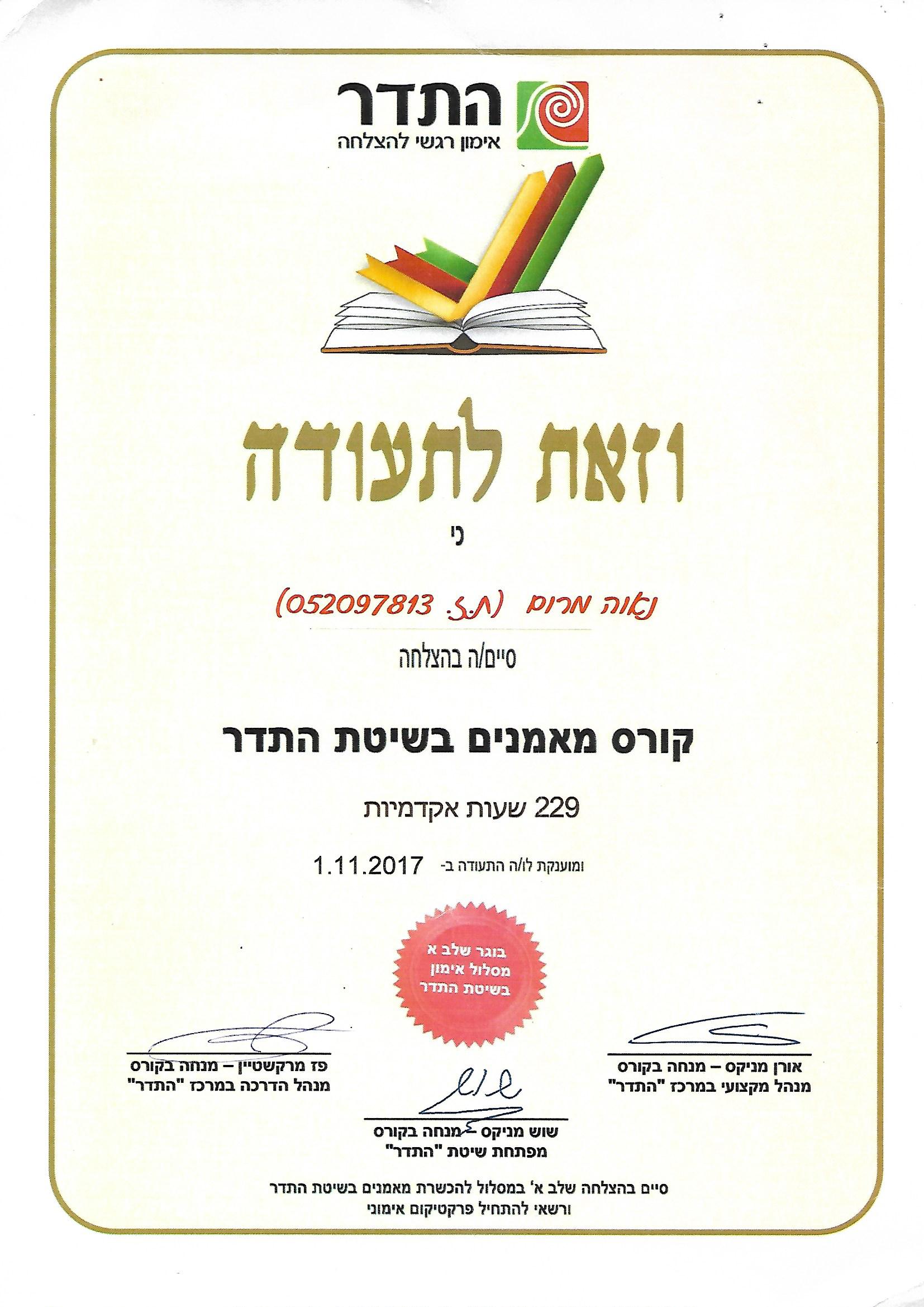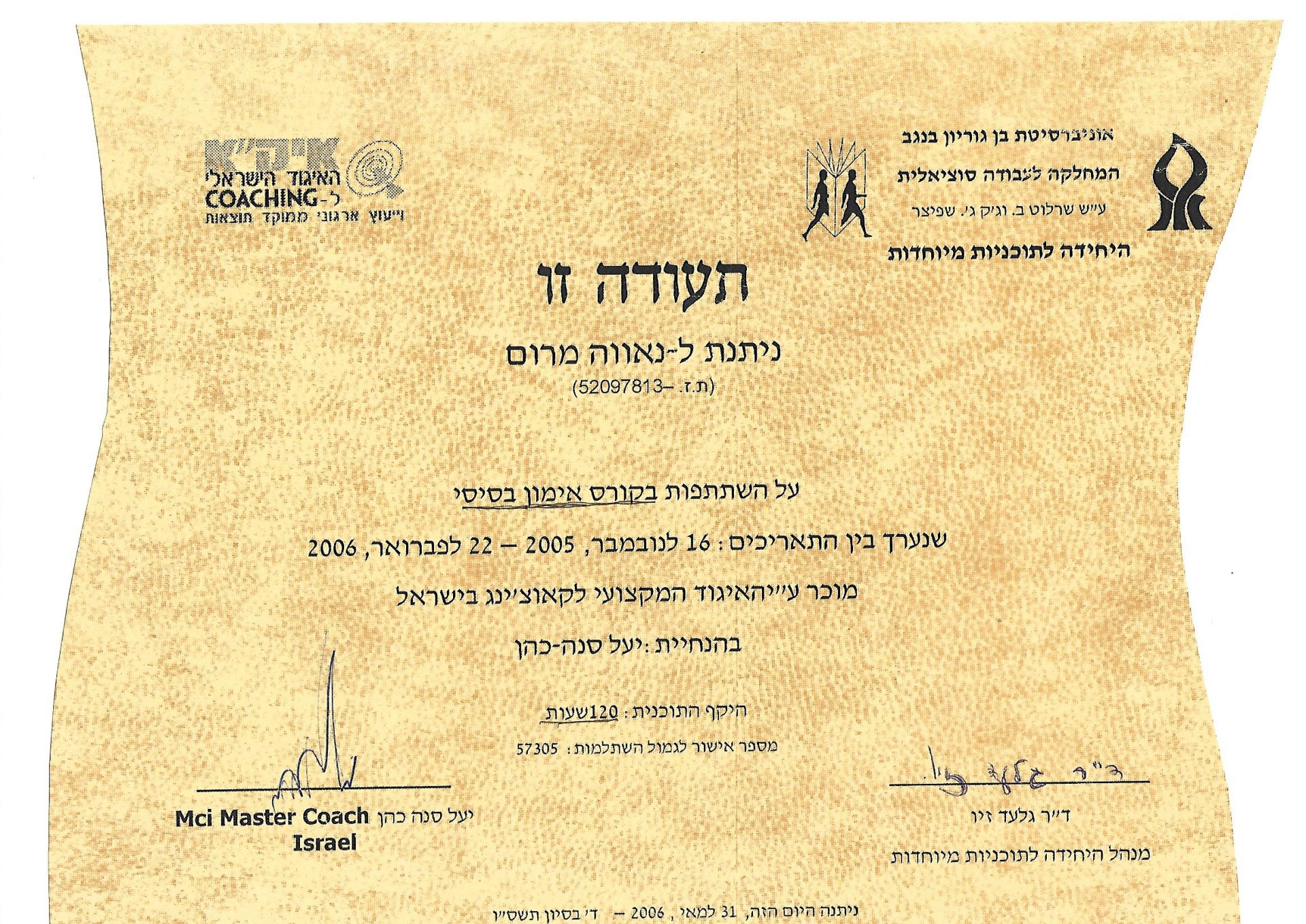۞ אימון אישי- עיסקי של יעל סנה תעודה מאיק"א